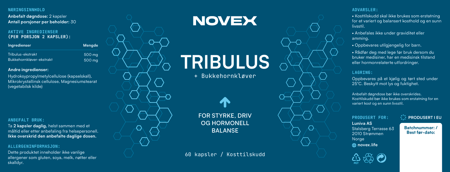 Testofen (et ekstrakt fra bukkehornkløver) og Tribulus terrestris er naturlige ingredienser brukt i kosttilskudd for å støtte kroppens egen testosteronproduksjon. Produktet er utviklet for menn som ønsker bedre fysisk ytelse, mer energi og økt muskelstyrke over tid.